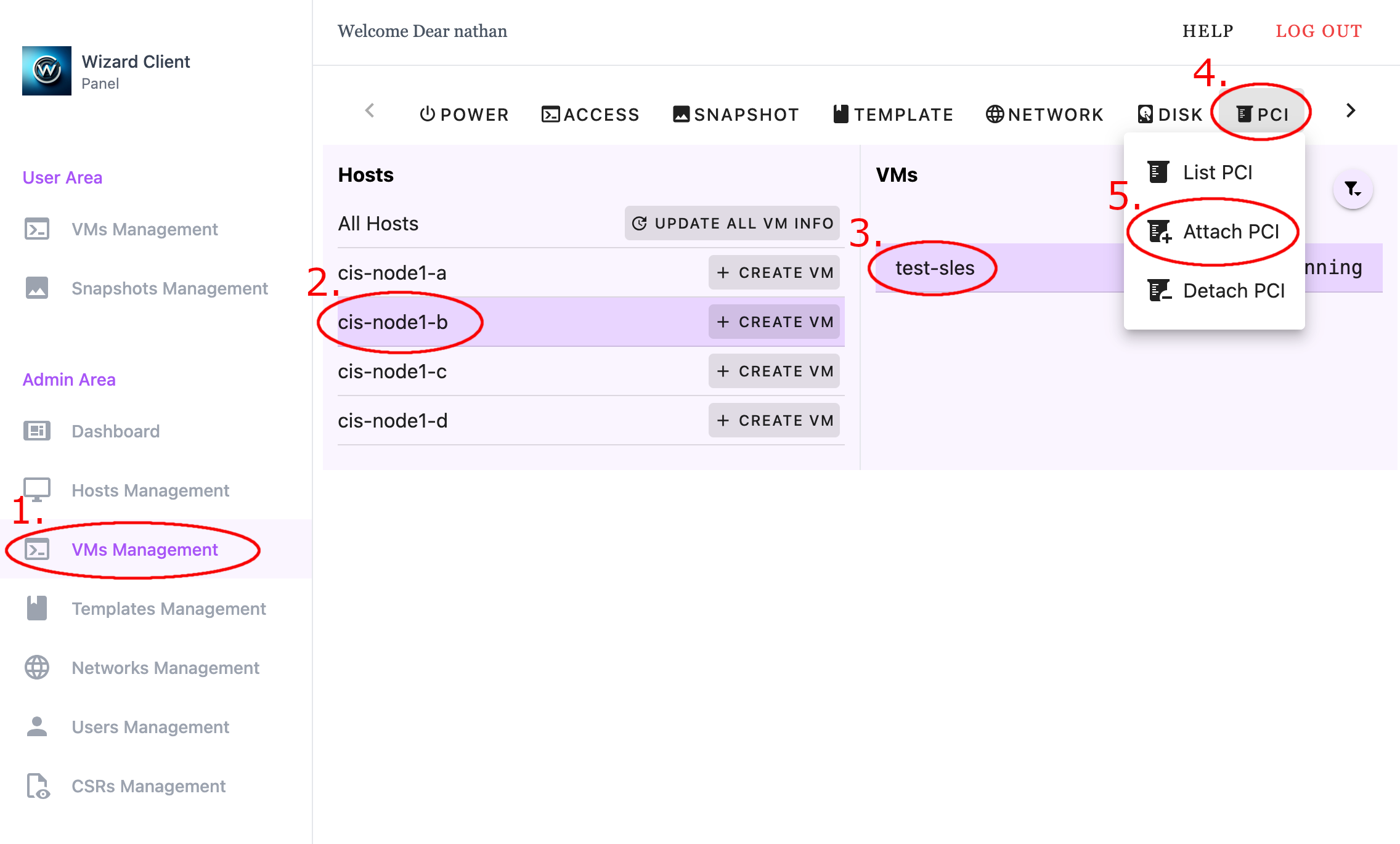Manage PCI Device Pass-Through via Wizard Client CLI